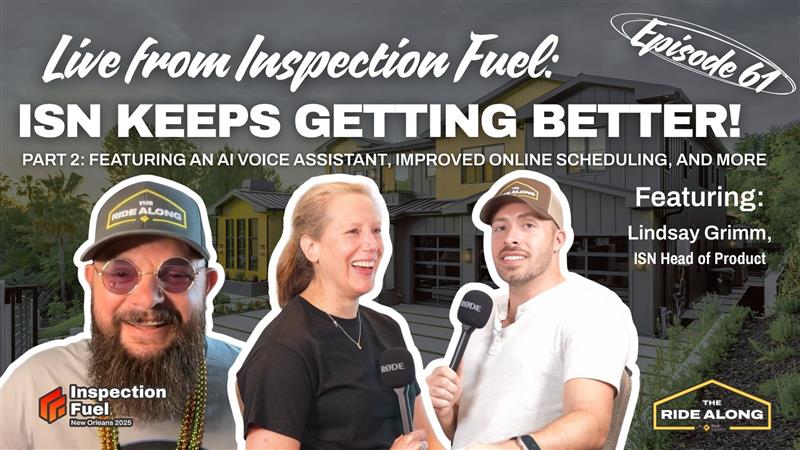 The Ride Along podcast set up at Inspection Fuel in New Orleans for an insider conversation with ISN’s Head of Product, Lindsay Grimm. Hosts Brad Lowery and Matt Brading dug into the newest updates for ISN’s home inspection software – and previewed what’s next.