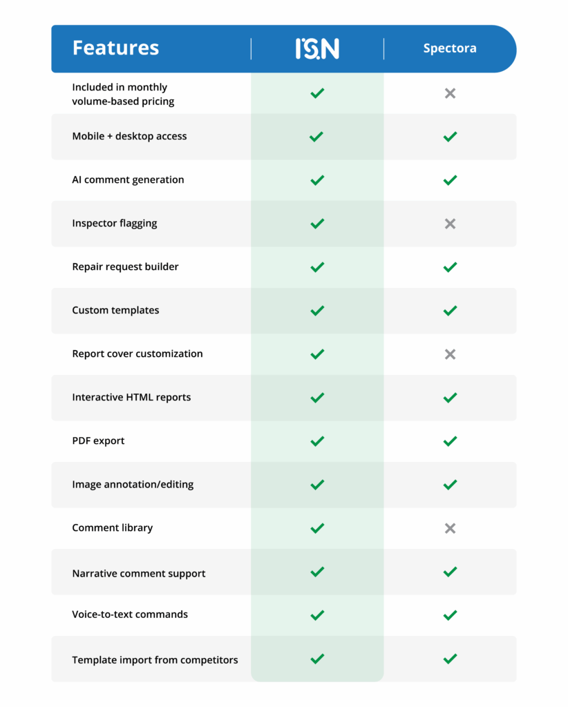 If you want extra marketing options and custom dashboards, Spectora Advanced brings some add-ons. If you want a home inspection software tool that saves time, simplifies your processes, and keeps every inspection running smoothly (while protecting cash flow and agent relationships) go with ISN.
